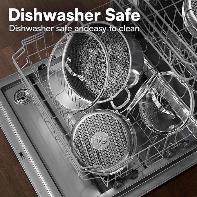 - Effortless Cleanup & Dishwasher Safe – Our stainless steel cookware non stick pots and pans set resists stubborn stains and is dishwasher-safe, saving time for busy families and professionals.