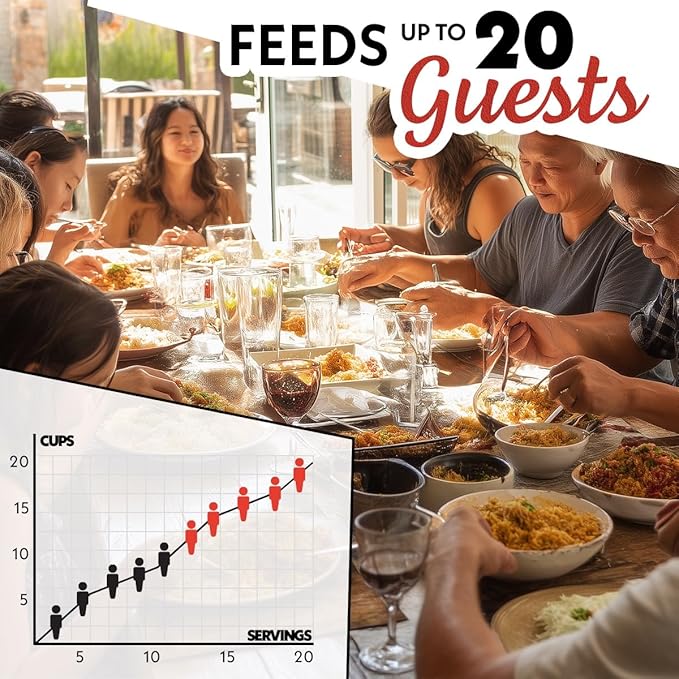 - Family-Sized Capacity: 5-quart inner pot cooks up to 20 cups of fluffy rice, perfect for large families or meal prep. Enjoy anywhere from 2 to 20 cups cooked rice without overflow or mess