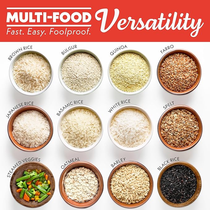 - 8 Smart Cooking Presets: One-touch programs for white rice, brown rice, quinoa, oatmeal, bulgur, barley, sauté, and steam take the guesswork out. Achieve perfect textures for grains, hot cereals, or even soups at the press of a button