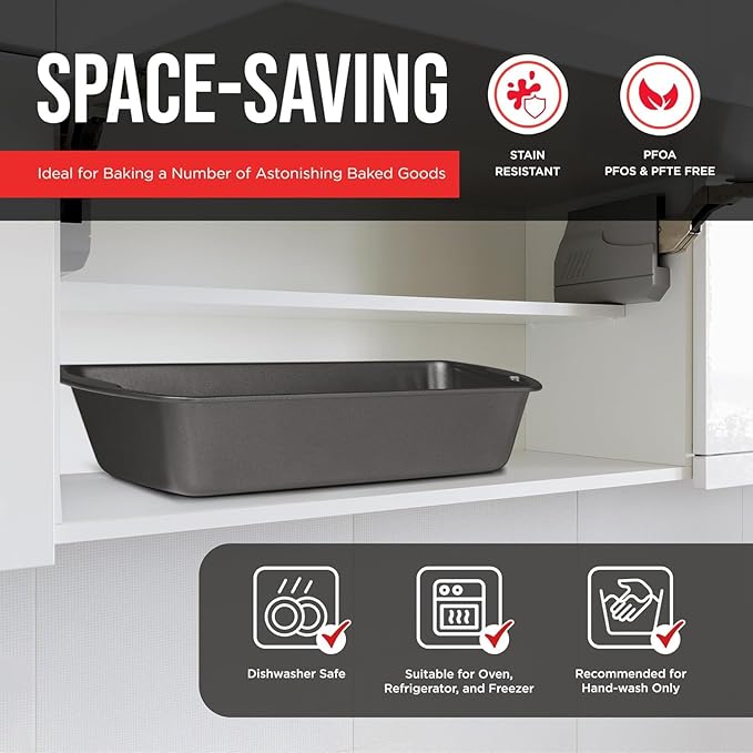 - PAN THAT KEEPS ITS COOL - Thanks to its reinforced carbon steel construction, this baking loaf pan resists warping at high temps and transitions like a champ between the oven, fridge, and freezer. It’s built for serious kitchen versatility.
