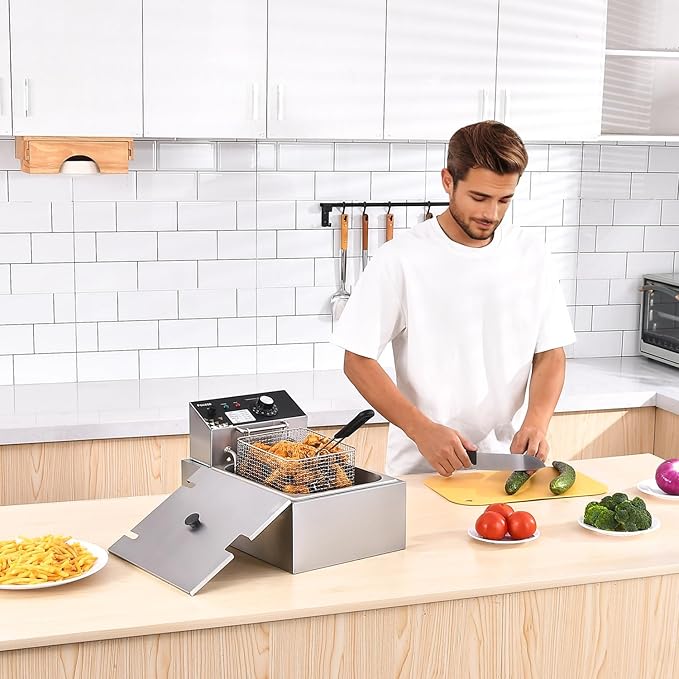 - 【High Power for Fast Heating】This deep fryer with basket boasts a powerful 1700W heating system, ensuring rapid heating and significantly reducing waiting time. Whether for family gatherings or restaurant use, our electric fryer is the ideal choice for quick and efficient cooking.