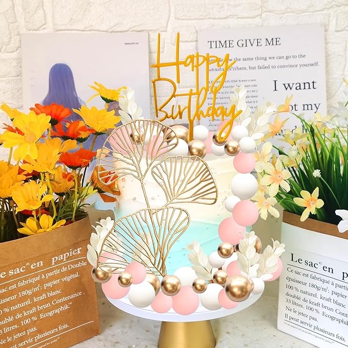 - -Package included: 1Pc Acrylic Cake Topper + 10Pc Grass + 45Pcs Mix Size Balls + 1Pcs Ginkgo Leaf. Size as the picture shows. These Balls Cake Topper Decorations are so chic and funny that make your Graduation party a big hit.