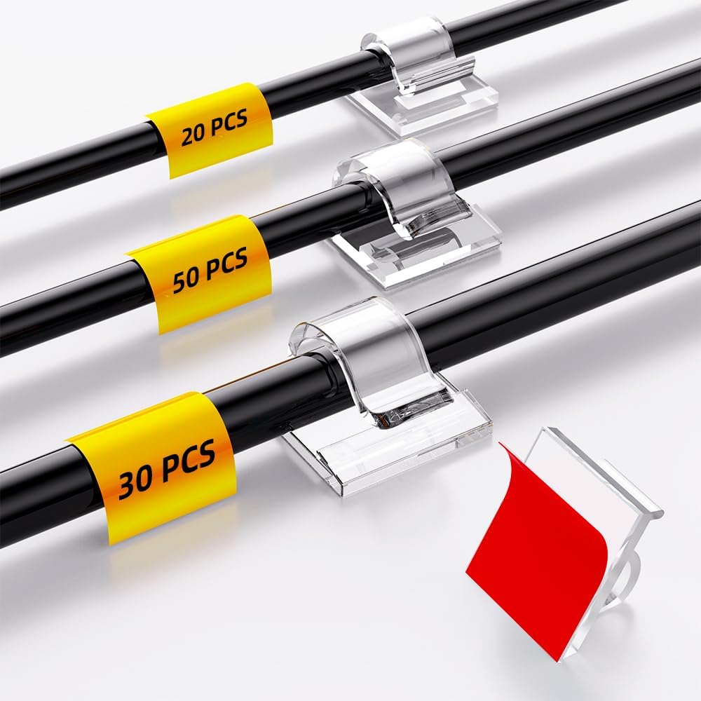 - Strong Adhesive: Made of PA66 material and upgraded adhesive, these cable clips can firmly hold cables, wires, and cords in place, remove without any residues and damage. Works on all clean surfaces like desks, walls, cabinets, wood, ceramics, metal, et