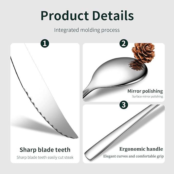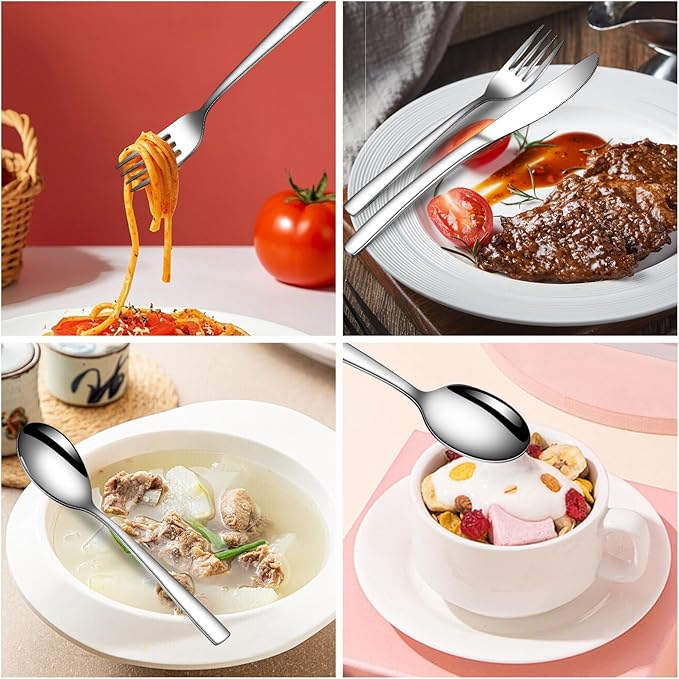 - Premium Material: Our knives forks and spoons silverware set is made of food-grade stainless steel, which is rust-resistant and durable. Designed for heavy use and frequent dishwasher washes, these stainless steel silverware set save you time and effort after every meal