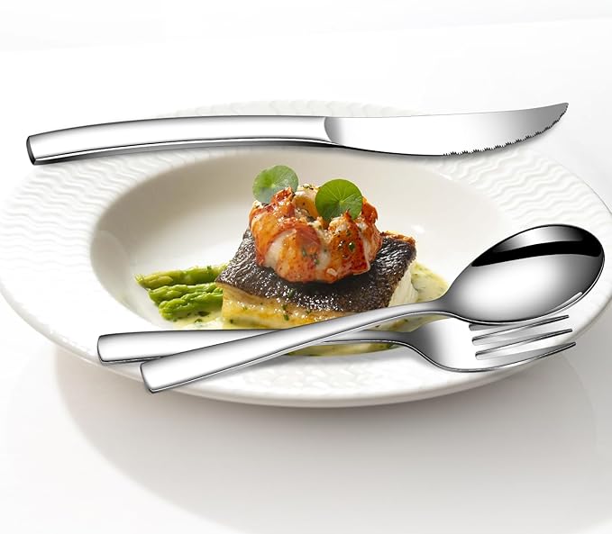 - Unique and comfortable handles: Unlike other cutlery set, the handles of this set are ergonomically designed with a slight curve that perfectly fits the natural curve of your hand. The balanced weight and comfortable grip reduce fatigue, providing maximum comfort during use