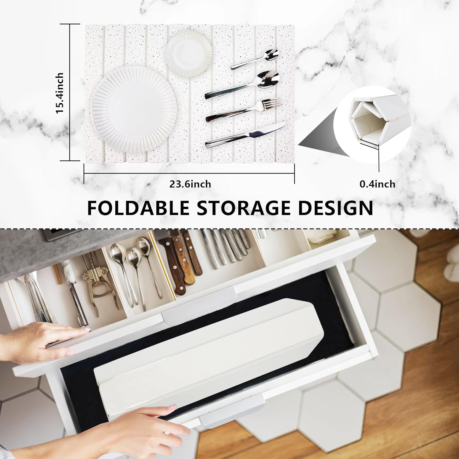 Large Stone Drying Mat for Kitchen Counter Diatomaceous Earth Collapsible 24”(L)*16”(W)Super Heat Resistant Mats, Quick Absorbent Dish Drying Rack(Spotted pattern)