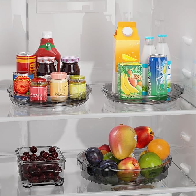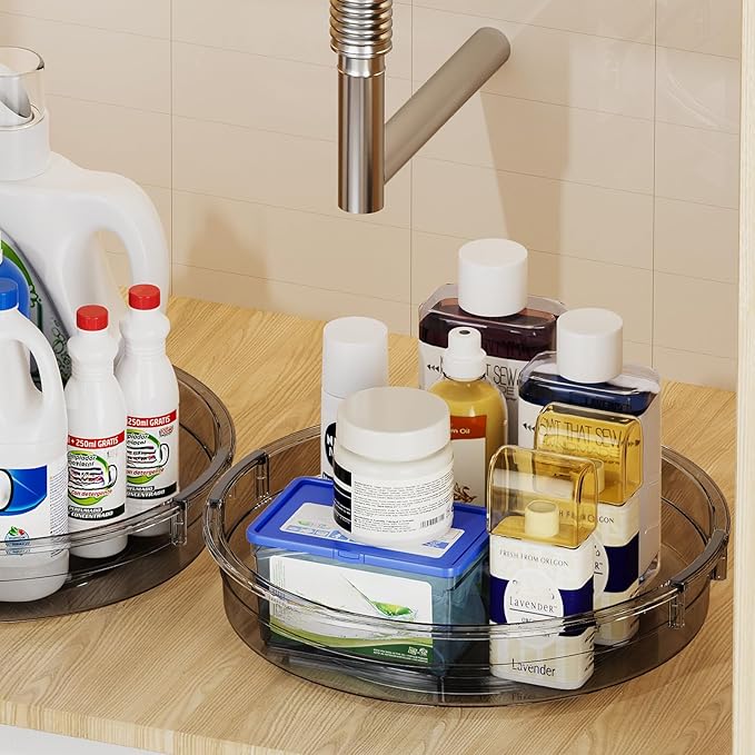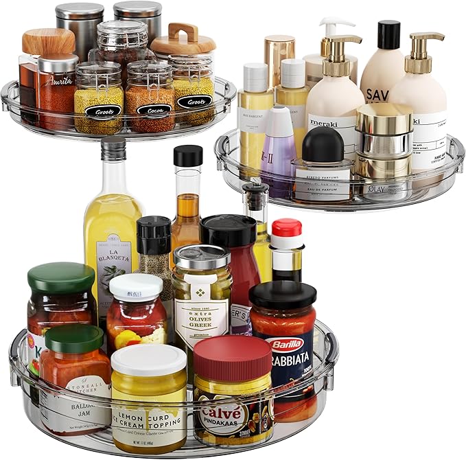 - Versatile Use and Space Saving: This Lazy Susan organizer is great for cabinet, kitchen countertop, fridge and pantry organizers and storage, keeping condiments, snacks, cans neatly. it's also a medicine cabinet organizer, spice organization for cabinet, bathroom makeup perfume spinning organizer. Elevates the functionality and efficiency of every space
