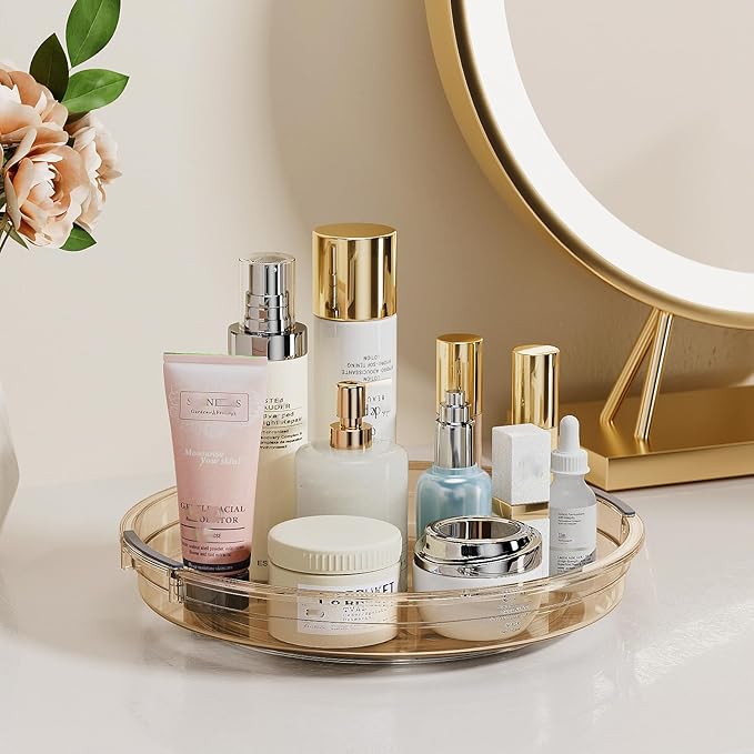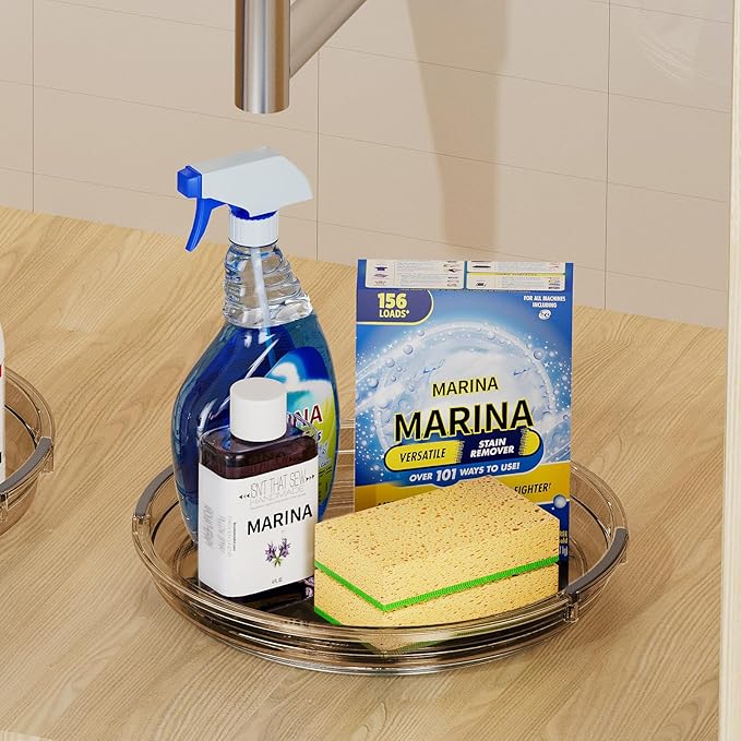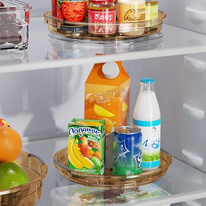 - Versatile Use and Space Saving: This Lazy Susan turntable is great for cabinet, kitchen countertop, fridge and pantry organizers and storage spices, condiments, snacks, cans. It's also a medicine cabinet organizer, bathroom makeup perfume spinning organizer. Elevates the functionality and efficiency of every space