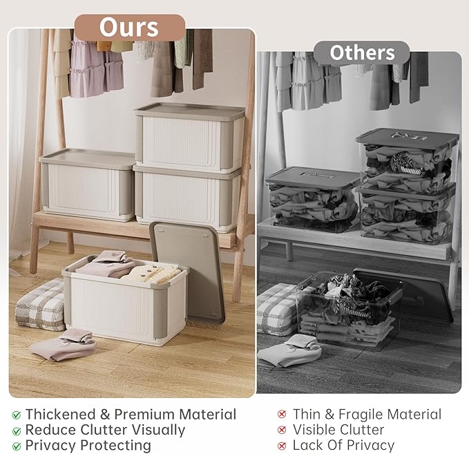 - Sturdy & Durable Storage Box: Made of premium polypropylene plastic, the closet organizer and storage bin is sturdy and durable for long-term use. Designed with multi-reinforced ribs at the bottom, it can withstand high-impact force without breaking. With corner posts, the storage bin is stable and not deformable even vertically stacks.