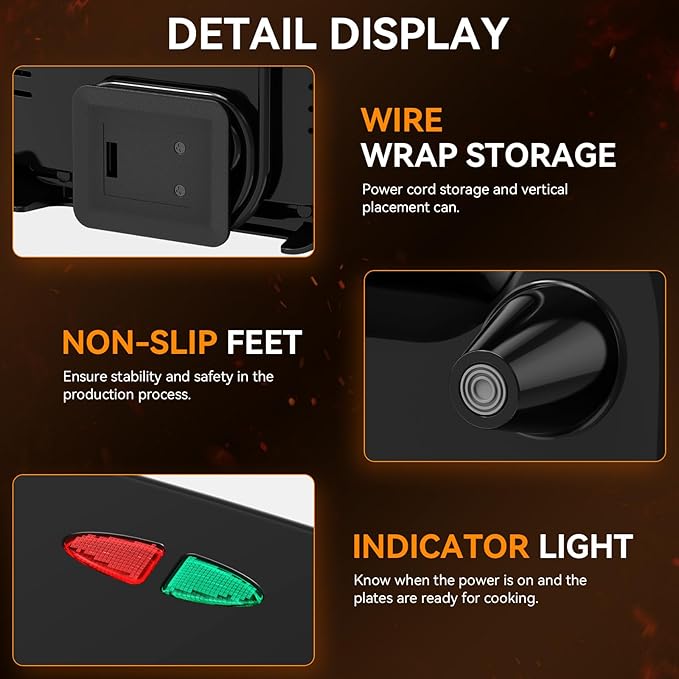 - Easy Cleaning & Compact Storage: The 8.46*4.92inch non-stick plates facilitate easy food release and cleanup, while the cord wrap storage helps in maintaining a clutter-free kitchen counter.