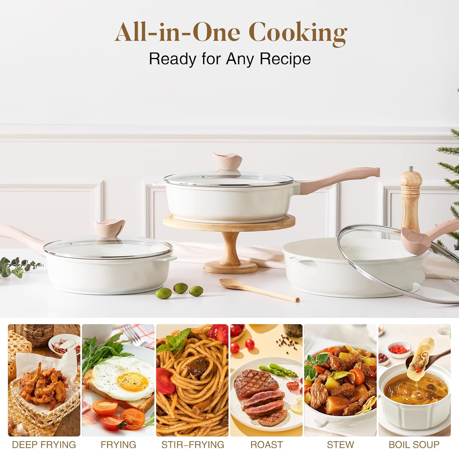 - 【Effortless Cleaning】: Cleaning up is a breeze with our non-rivet construction and non-stick coating; simply wipe the ceramic pan with a sponge and warm soapy water, or toss it in the dishwasher for even more convenience, maintain a clean and pristine pan effortlessly;