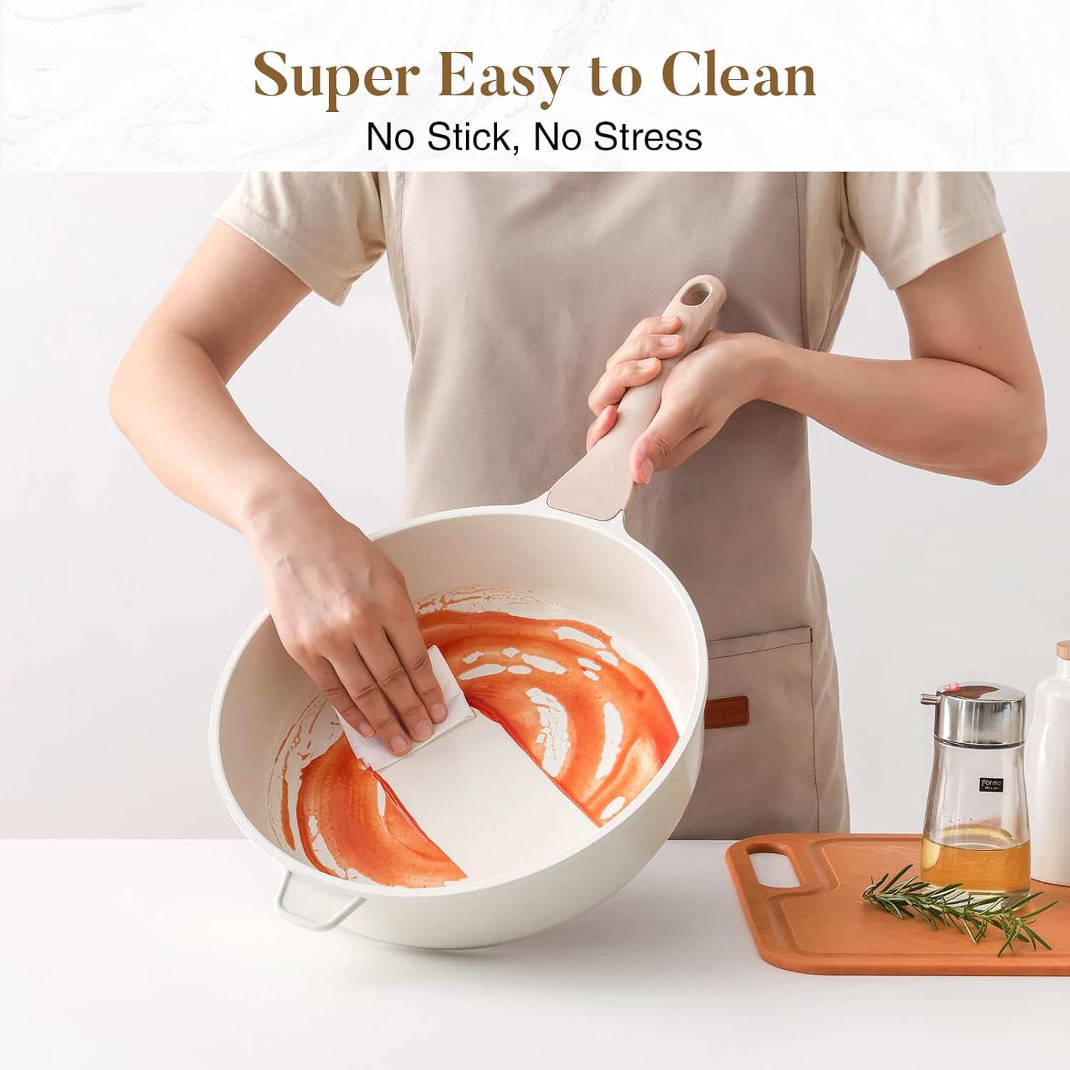 - 【Effortless Cleaning】: Cleaning up is a breeze with our non-rivet construction and non-stick coating; simply wipe the ceramic pan with a sponge and warm soapy water, or toss it in the dishwasher for even more convenience, maintain a clean and pristine pan effortlessly;