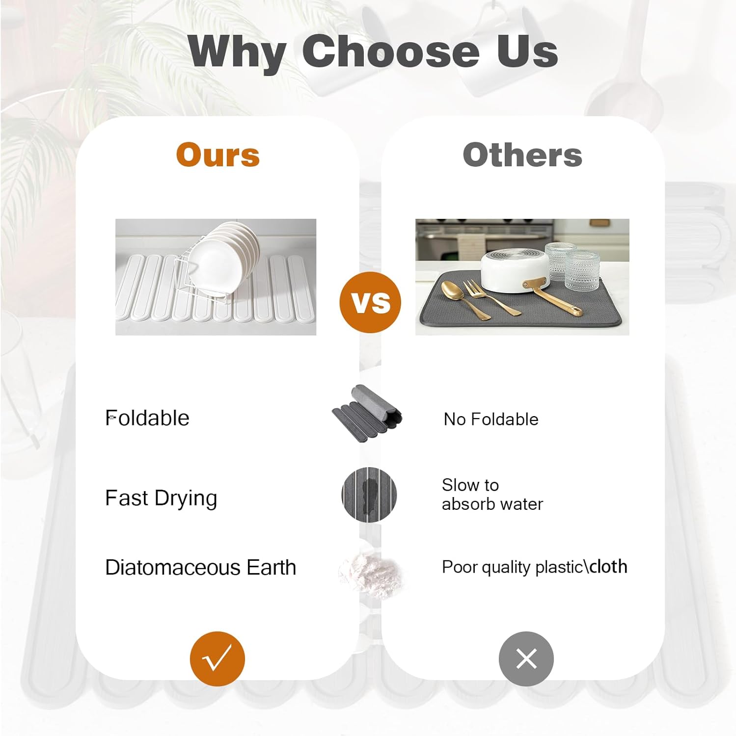 - FOLDABLE & SPACE-SAVING : This foldable large stone dish drying mat saves up to 60% of space when stored, making it perfect for compact kitchens. It can also be trimmed to any size, allowing full customization to suit your sink, countertop, or drying rack needs.