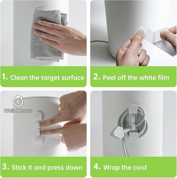 - 4. Safe to Use: Our cord organizer is crafted with BPA-free plastic and environmentally friendly nano tape. It's safe to use on household appliances, and will not leave any residues after removal.