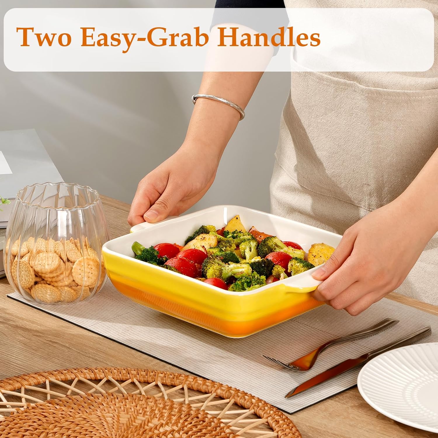 NUTRIUPS 8x8 inch Square Baking Dish, 50 Oz /1.6 Qt Ceramic Baking Pan with Handles, Casserole Dish for Oven, Porcelain Bakeware (Gradient Yellow)