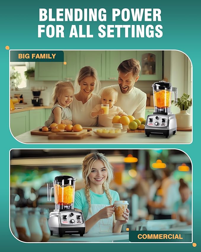 - POWERFUL ICE CRUSHING IN SECONDS: Equipped with a powerful 1800W full-copper motor and hardened 6-blade 304 stainless steel assembly, this smoothie blender reaches up to 30,000 RPM, crushing ice cubes, carrots, and nuts in seconds. Whether you're preparing smoothies at home or serving customers in a café, this high-speed blender ensures fine, smooth textures every time