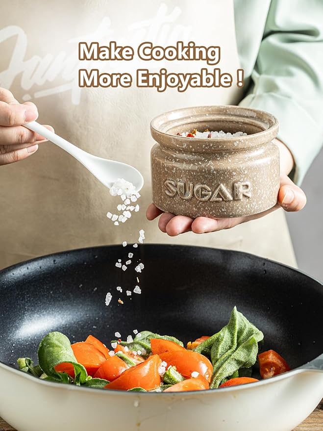 - PRO-GRADE CERAMIC: Crafted from high-quality ceramic material, this sugar container ensures durability and longevity, lead-free, cadmium-free, and scratch-resistant. The smooth surface of this sugar jar is easy to clean, ensuring it stays looking great with minimal effort on your part. Dishwasher safe is a breeze!