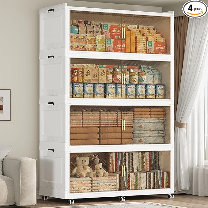- 【Foldable, Stackable, Quick Assembly】Our large plastic storage bins can be quickly unfolded or collapsed in just 3 minutes to maximize space utilization. It can be stacked layer by layer into a cabinet, with side buckles to secure each level in place, preventing tipping or scattering. An essential large storage cabinet for homes and dorms.