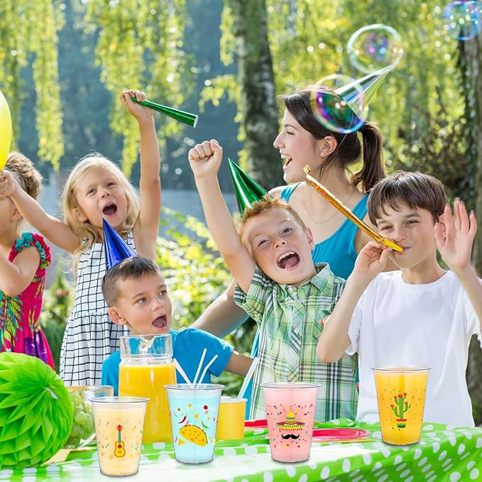 - Enough Quantity: you will receive 200 Mexican themed plastic disposable cups, including 4 patterns of straw hat, cactus, guitars and pie, 50 cups of each pattern, which will add a joyful atmosphere to your party
