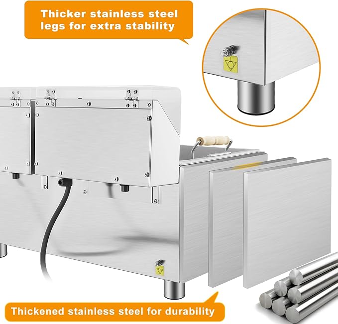 - Comprehensive upgrades:electric fryer with basket and lid we upgraded a transparent protective cover on the top of the operating panel can effectively prevent oil spattering, more convenient to clean and also reduce the failure rate caused by oil infiltration,(shipped with the shipment and can be installed or not)taking into account the large body we upgraded the more robust stainless steel anti-slip legs, making the machine more stable, the attached 3 baskets can match different use scenarios
