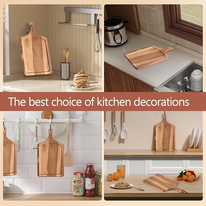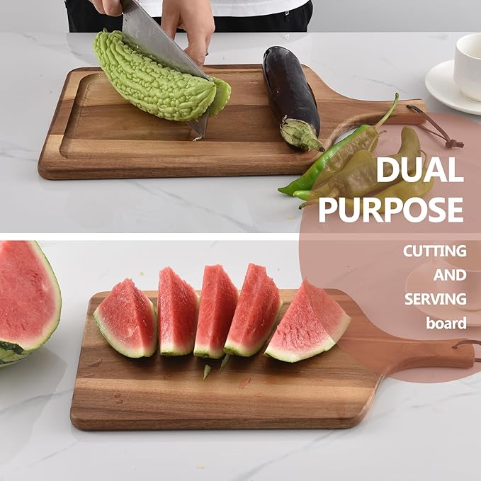 Acacia Wood Cutting Board with Handle, Wooden Chopping Board for Pizza Bread Cheese, Charcuterie Boards, Large Cutting Boards for Kitchen Decor, 17.7" X 9.8"