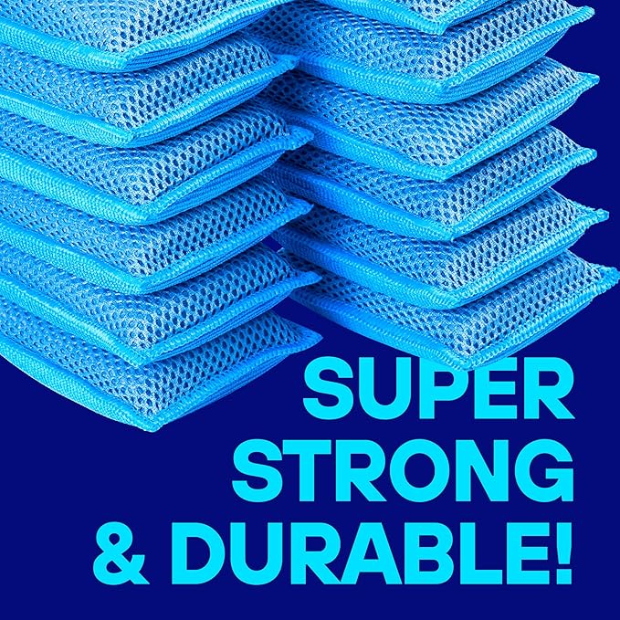 SCRUBIT Reusable Sponges for Dishes - 12 Pack Microfiber Sponges Kitchen Dish Scrubber, Machine Washable & Non-Scratch Scrubbers (Blue)