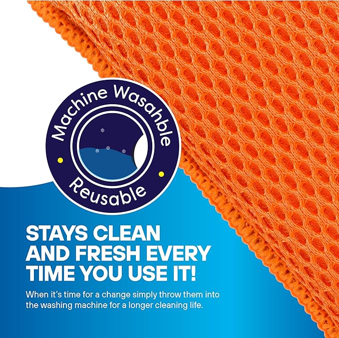 SCRUBIT Reusable Sponges for Dishes - 12 Pack Microfiber Sponges Kitchen Dish Scrubber, Machine Washable & Non-Scratch Scrubbers (Orange)