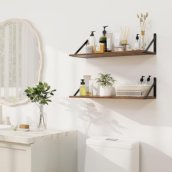 - [Large Capacity Floating Shelves] - Our wall shelves are 24" long x 8" deep, providing ample storage or display space for your kitchen, living room, bedroom, bathroom, laundry room, and more. With such a large space, you can place many items like books, collectibles, plants, crafts, photos, laundry detergent, etc. Our shelf can even be used as a bookshelf or a nightstand. Let our shelves decorate every corner of your home!