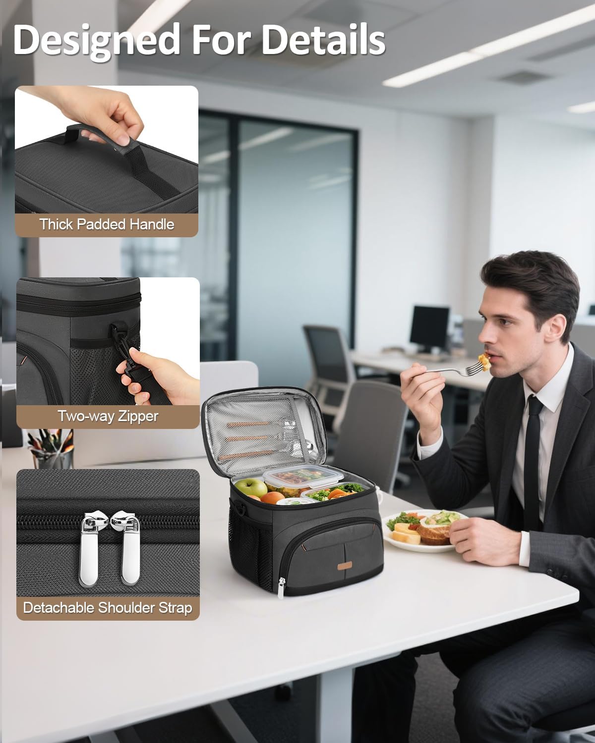 Lunch Box for Man Women, Insulated Lunch Bag Cooler Bag Leakproof Lunchbox Lunch Tote Bags with Removable Strap for Work School Picnic Travel (Grey/12L