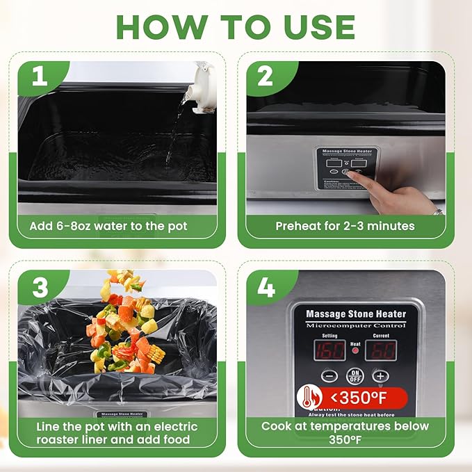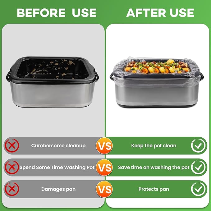 - Easy To Clean: After using the electric roaster liner, it saves you time cleaning the pot. You just need to remove the lining and throw it away after use