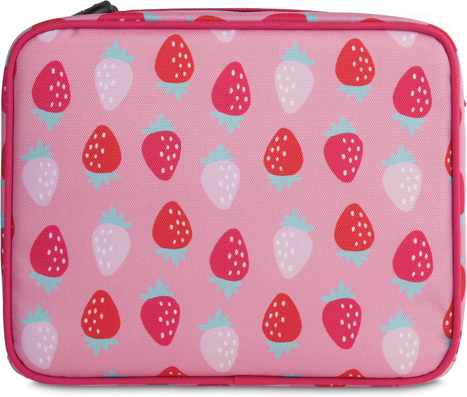 PackIt Freezable Classic Lunch Box, Sweet Strawberry, Built with ECOFREEZE Technology, Collapsible, Reusable, Zip Closure With Zip Front Pocket and Buckle Handle, Designed for Fresh Lunch On the Go