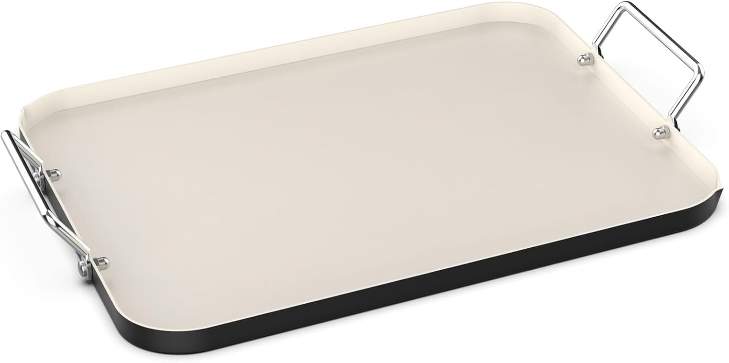 17.7" x 13" Burner Griddle Pan for Stove Top Oven, Stainless Steel Handles, Non Stick Ceramic Griddle Pan Griddle Skillet, PTFE Free PFOA Free, Black