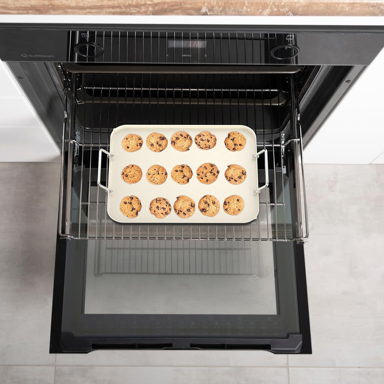 - ✅The surface of the nonstick griddle pan is coated with a ceramic coating. The ceramic coating is free of PFOA, PTFE, lead, cadmium, or other toxic metals, meeting food contact safety standards