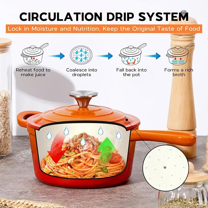 2 Quart Saucepan with Lid, Onader Enameled Cast Iron Sauce Pan, Small Cooking Sauce Pot, Enamel Dutch Oven Pot Nonstick – Sunset Orange