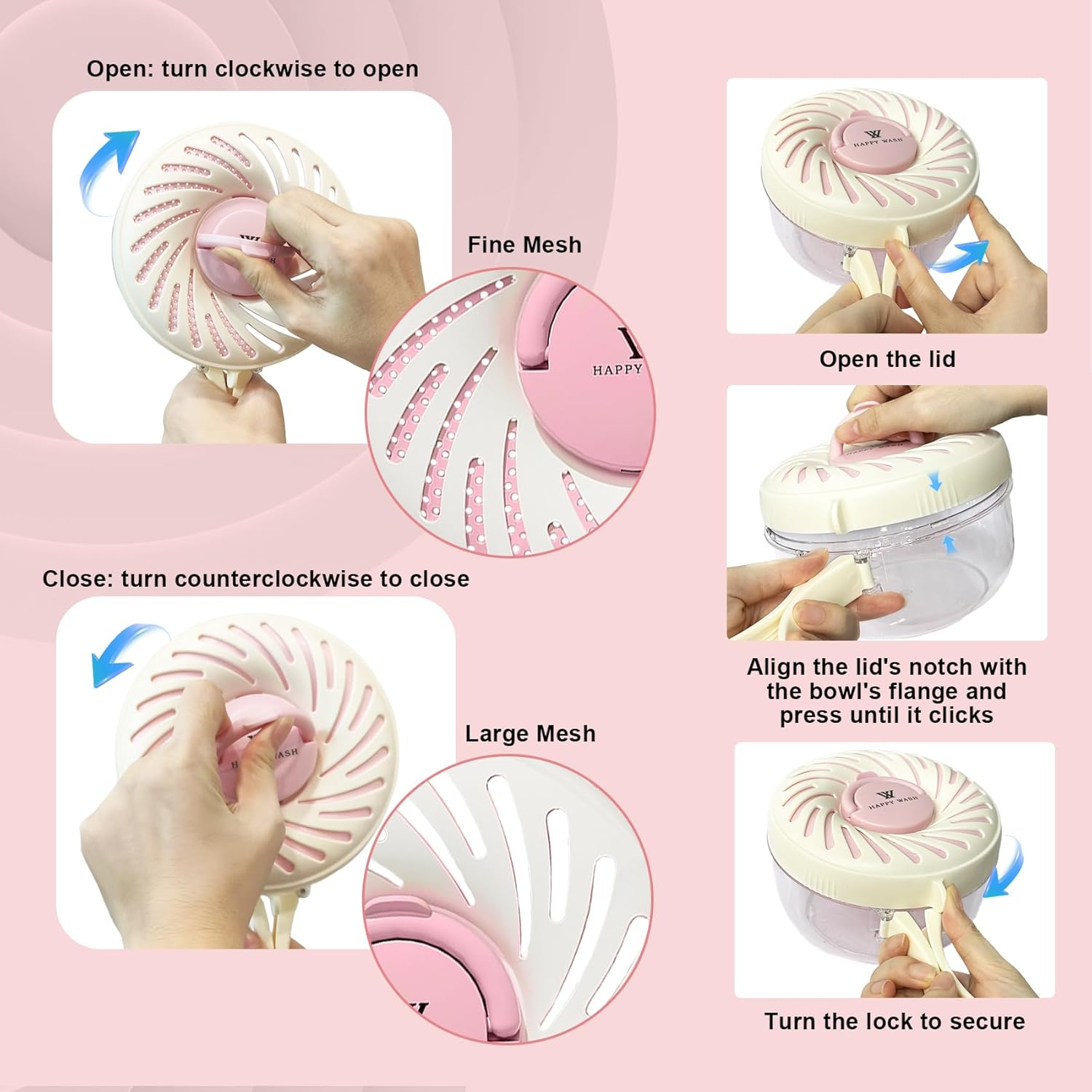 - Upgraded Drainer: Fruit washing bowl features both fine mesh and large slots for draining. Adjust the drainage size with the drain switch to suit your needs. The fine mesh is perfect for smaller fruits, vegetables, rice, and beans.The large colander can wash pasta, tomatoes, apples, etc.