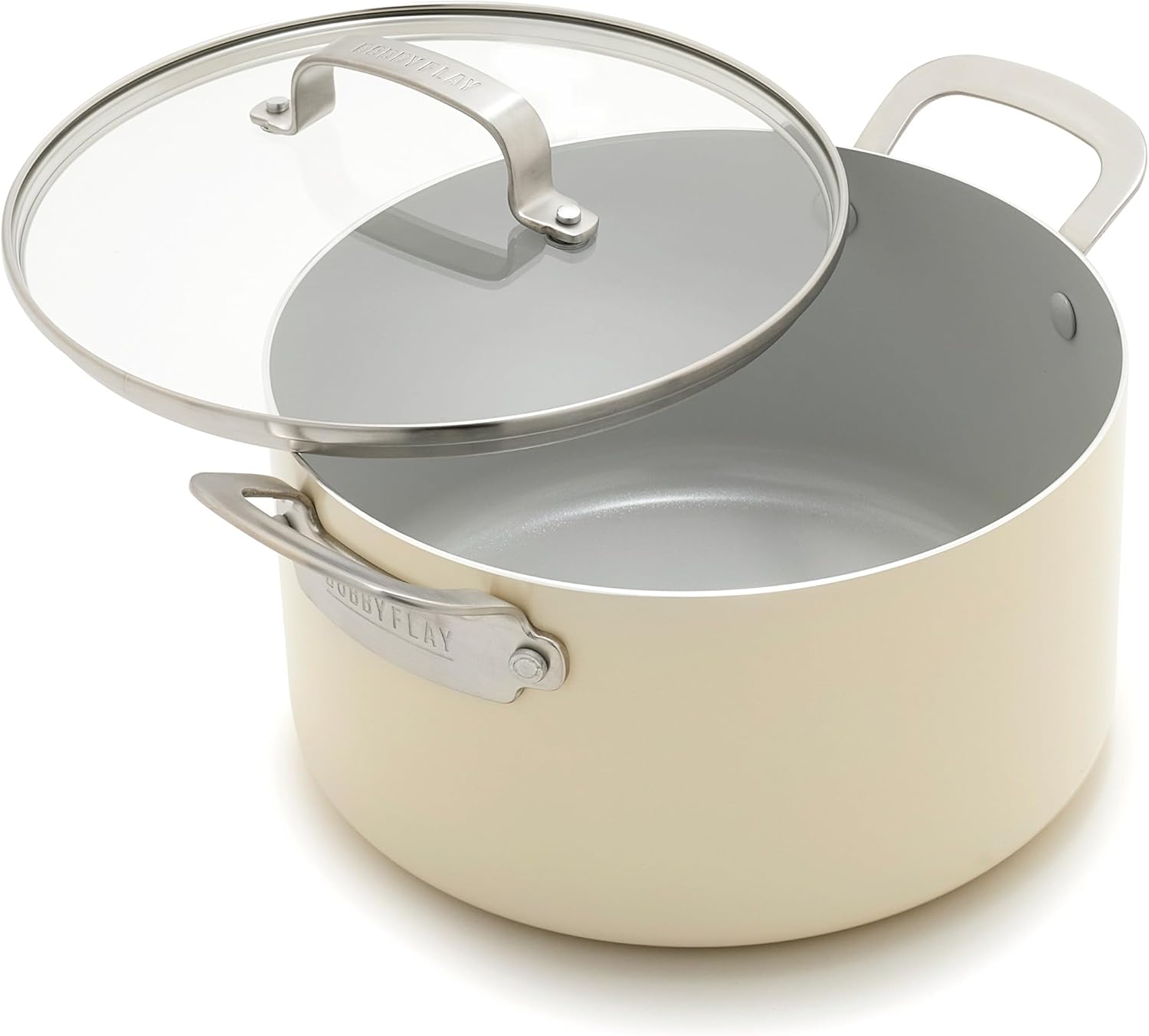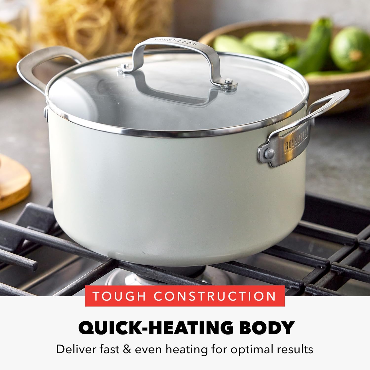 GreenPan x Bobby Flay 6QT Stockpot with Glass Lid, PFAS-Free Diamond Ceramic Nonstick Pot, Induction Suitable, Easy Clean Dishwasher & Oven Safe, Quick Heating, Pasta, Soups, Cream