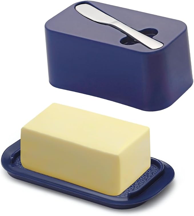 - 1. All-in-One Solution: This butter dish comes complete with a sleek stainless steel butter spreader knife, providing everything you need to enjoy your favorite butter brands effortlessly. The durable plastic construction ensures long-lasting use, while the stainless steel knife resists rust and stains, maintaining its sharp edge for smooth spreading every time.β