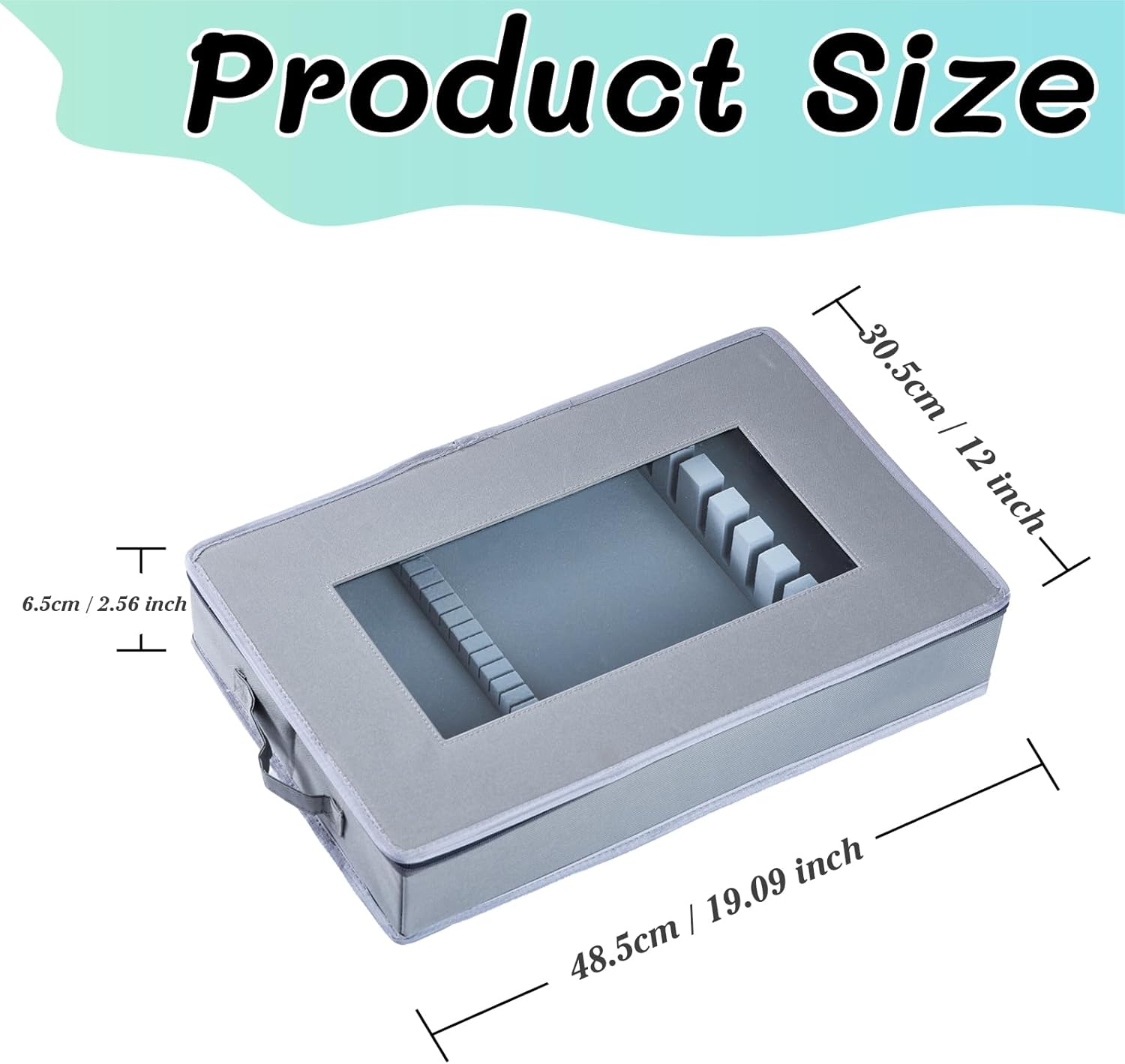 Zippered Silverware Storage Box, with Felt Lined and Clear Lid, Gray Fabric Chest Case for Storage and Organizing Utensils, Silverware, Flatware, Cutlery, Large Containers(No Cutlery Included)