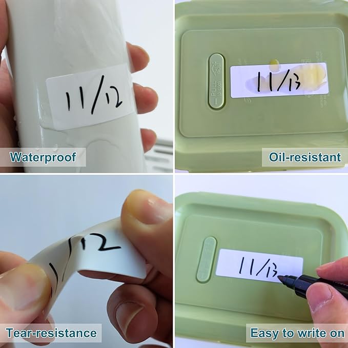 - WATERPROOF & DURABLE: Waterproof and oil-resistant surface keeps writing clear in cold, damp, or messy conditions. Perfect for frozen food, canning jars, kitchen containers, or batch cooking labels—no smudging or peeling.