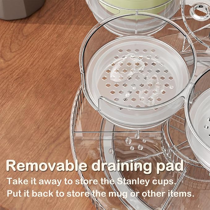 - Rotating Stanley Cup Holder, Portable Water Bottle Organizer for 6 Stanley 40 oz & Mug, Adjustable Lazy Susan Organizer for Table Top Cabinet Home Countertop Pantry Shelf Tumbler Lid Organizer