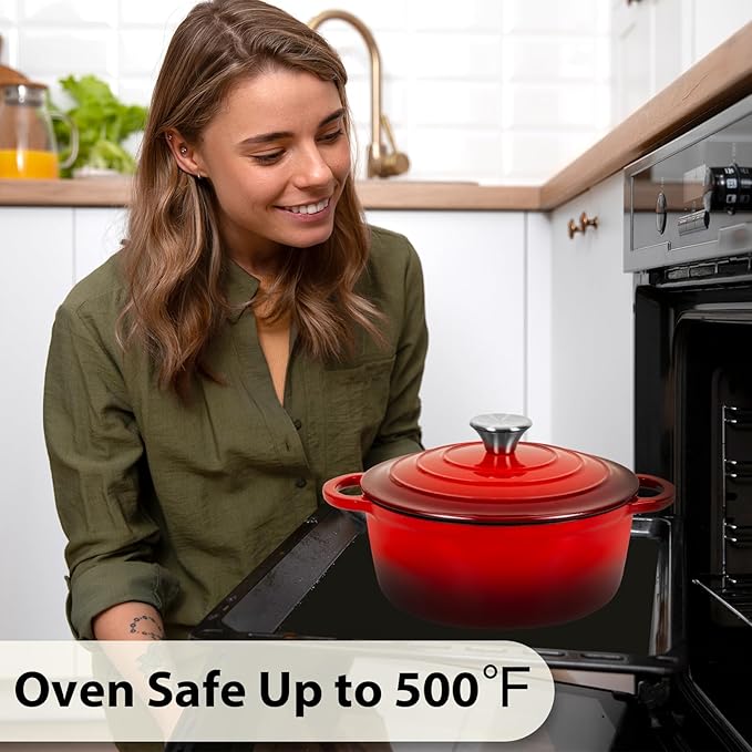 - Effortless Maintenance: Food-safe enamel interior resists staining; handwash recommended for longevity