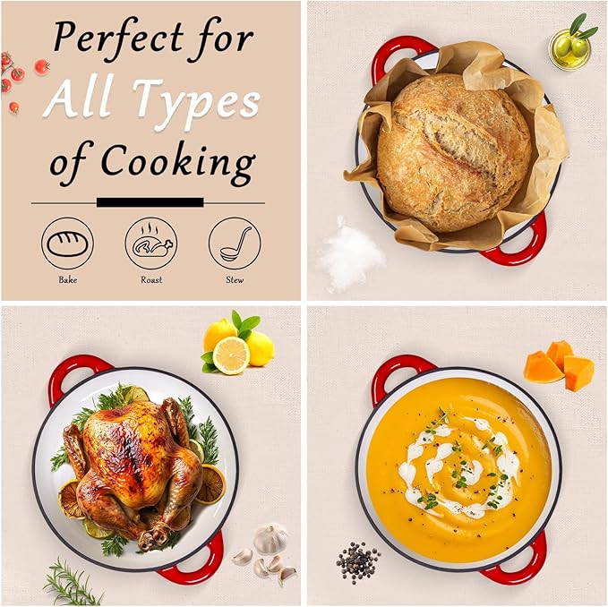 - 7-Layer Superior Construction: Triple-enamel coating + 4-layer cast iron core ensures unparalleled heat retention (30% better than standard Dutch ovens) and chip-resistant durability