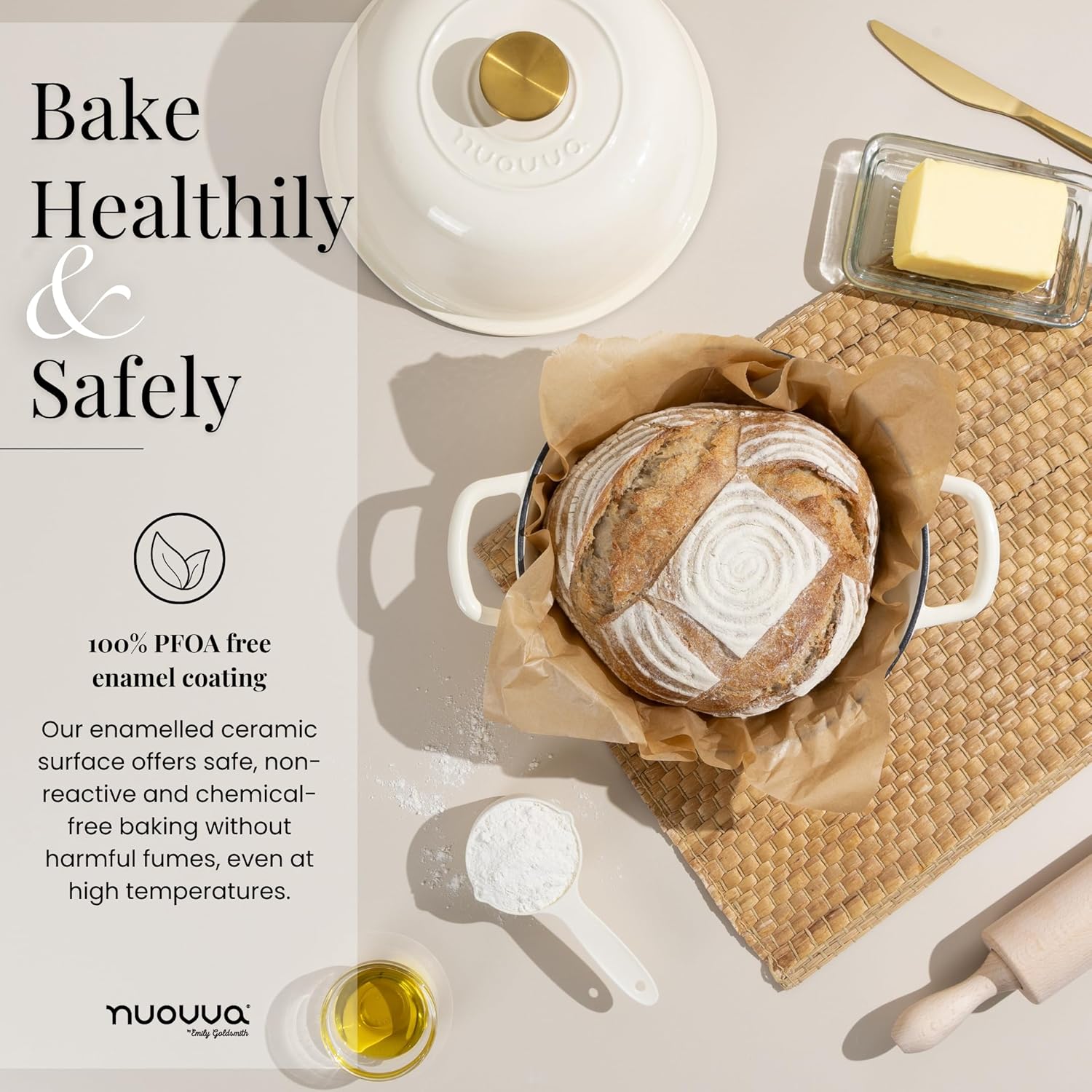 - PERFECT FOR BREAD BAKING: Our enamelled bread pot with lid is designed to create the ideal environment for baking, ensuring even heat distribution throughout. The included lid traps steam, giving your bread a moist crumb and delightful texture. Achieve a delectable golden crust every time!