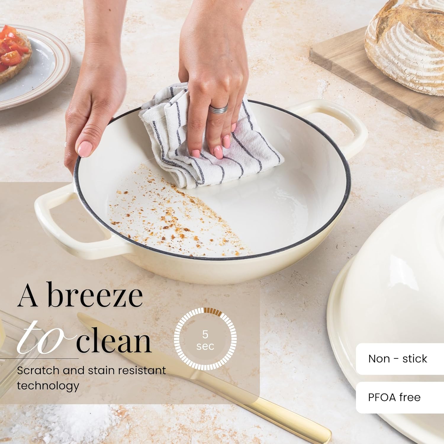 - ENAMELLED FINISH: The enamelled surface of the cast iron dutch oven pot by Nuovva is non-reactive, making it safe for all types of dough and ingredients. It resists rust and scratches, ensuring your pot remains in pristine condition for years. The smooth enamelled finish makes cleaning effortless!