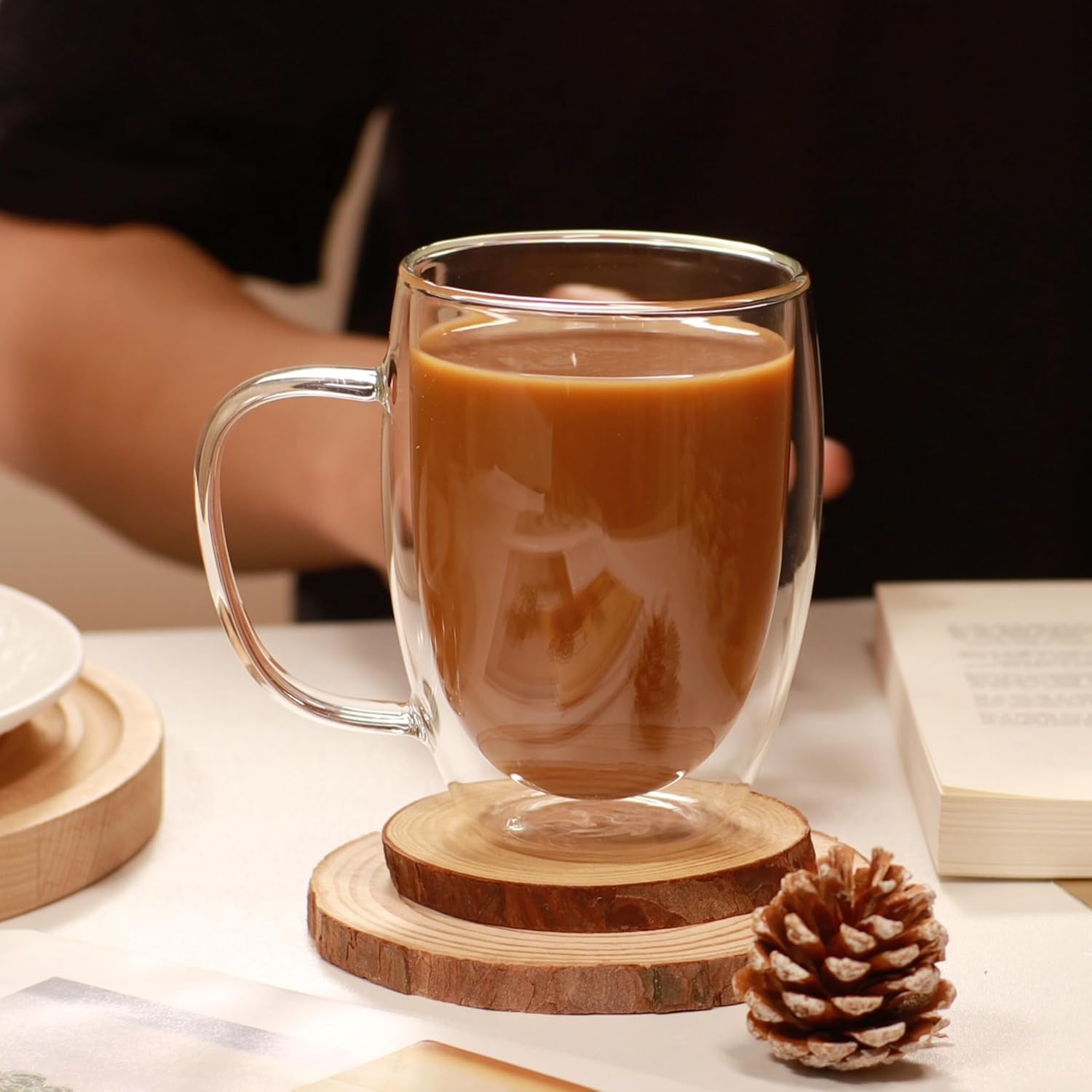 - Double-Walled Cup Design: Glass coffee cups are double-walled and have an excellent thermal insulation effect, which helps keep drinks cold or hot longer.