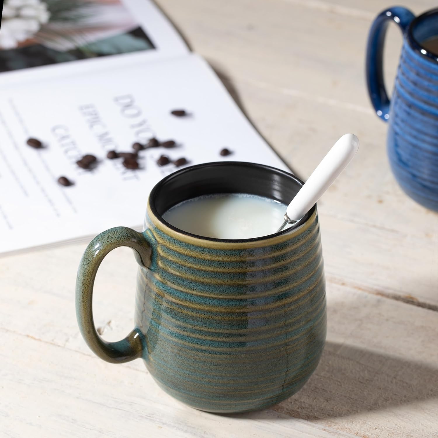 - UNIQUE GLAZE: The glaze color on the surface of the mug changes uncertain and naturally caused by the temperature changes in the kiln during the ceramic firing process, which is different from the traditional uniform colors. The special reactive glaze technology make each ceramic mug unique and has its own degree of colors
