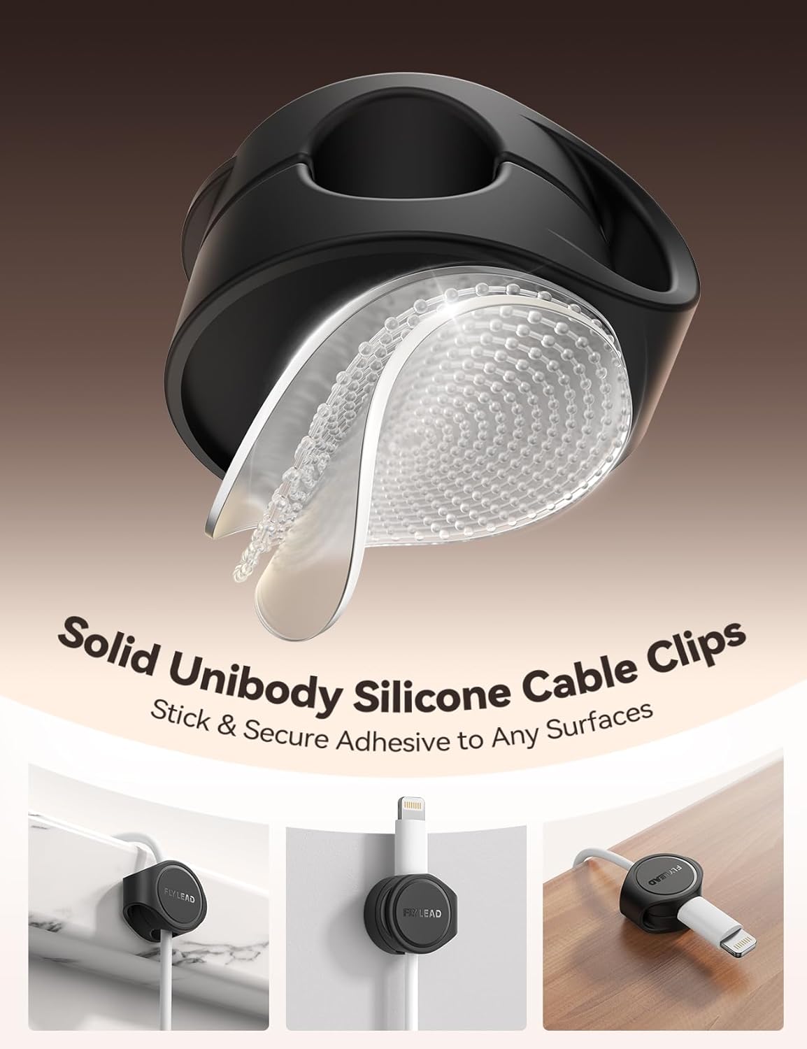 - Adhesive-enhanced No-Residue Acrylic Pad: The capability of bonding firmly to different surfaces acrylic pad is used in the FLYLEAD cable holder, while ensuring it won't leave any ugly marks on the surface after removing the cable organizer. Simply peel off the adhesive backing and affix the adhesive cable clips to a cleaned surface. Maintain firm pressure for 30 seconds(Note: For optimal adhesive performance, allow 24 hours before use), and it will then be ready for use. Additionally, two replacement adhesive pads are included with the product to facilitate reapplication of the organizer