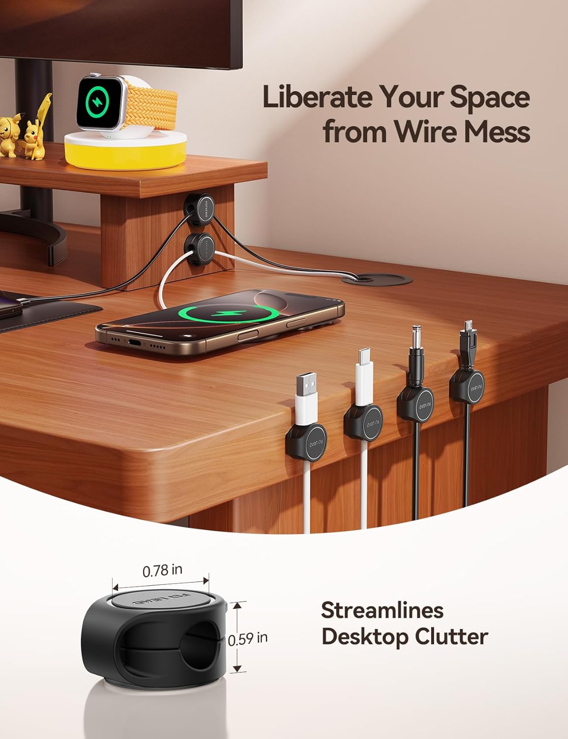 - Space-saving Compact Body Keeps Cords Neatly in Any Narrow Place: A single FLYLEAD wire management effectively secures cables within compact spaces. Multiple FLYLAED wire clips can be combined not only to simultaneously organize cables of varying thicknesses within a single corner, but also to collaboratively design customized cable routing layouts in home corners as you wish