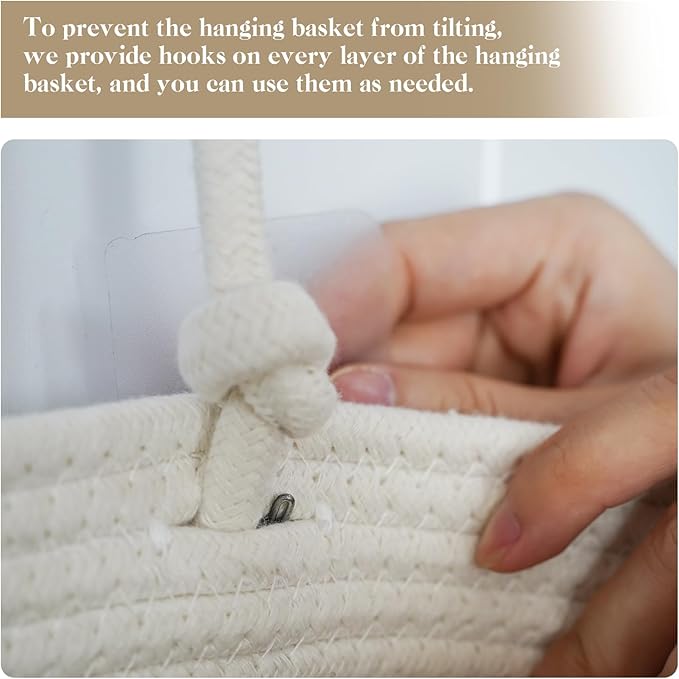 - Large Capacity: The whole woven cotton hanging wall basket measures a total height of 44.5 inches; One over-the-door hook and ten sticky hooks are prepared for you to hang up the basket. You can also use them as needed if the hanging basket appears to be tilted.