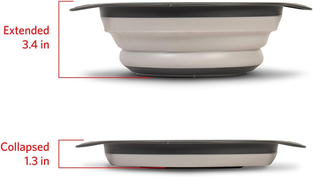- SAVES SPACE IN YOUR KITCHEN β Say goodbye to bulky colanders! This collapsible strainer folds down to only 1.3 inches high to take up minimal space in cupboards and drawers. Great compact tool for RVs and campers.